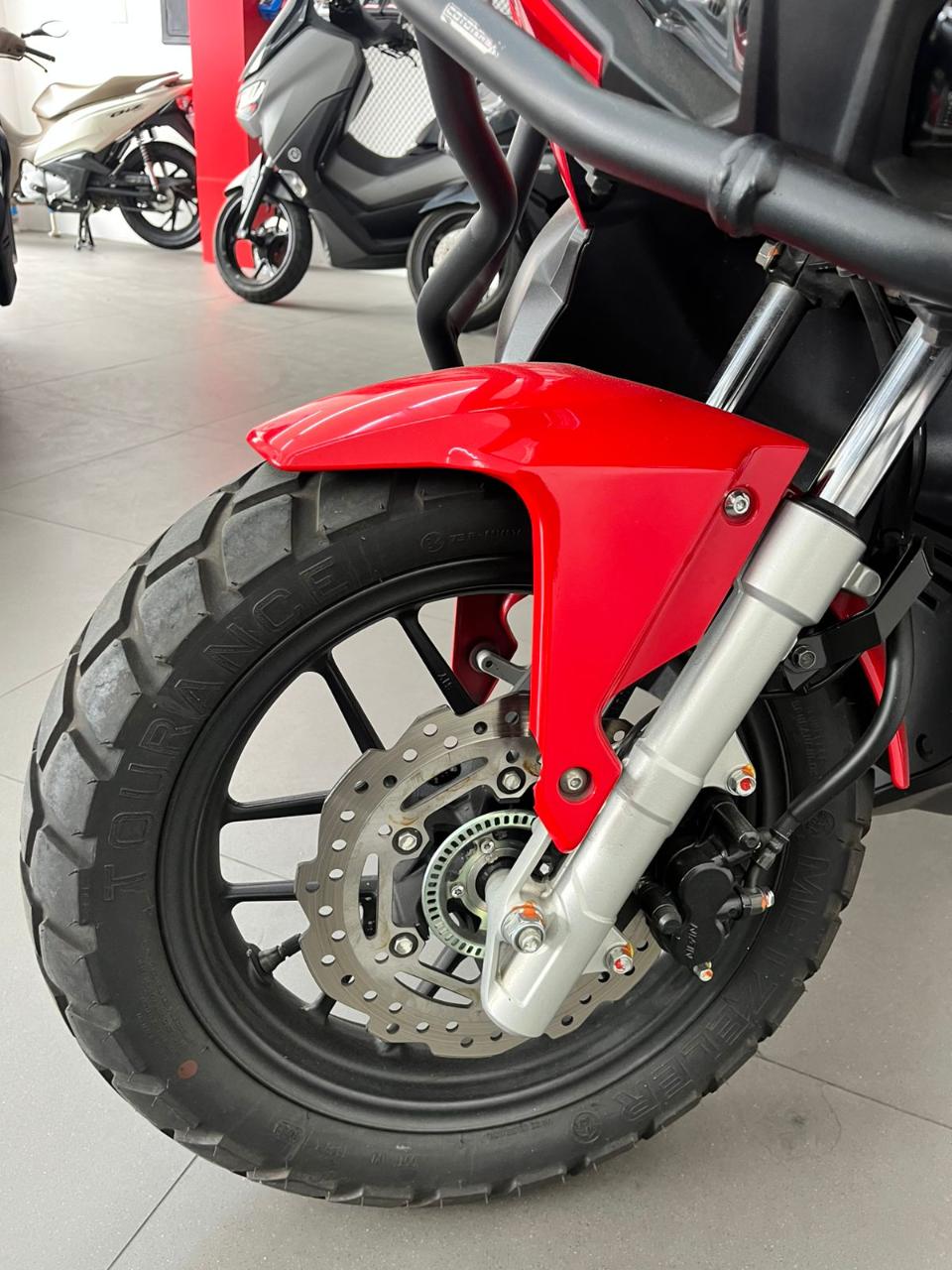 A Honda ADV 150 possui um motor monocilíndrico de 149,3 cc que entrega 13,2 CV de potência e 1,38 kgf.m de torque, com transmissão automática V-Matic, freios a disco com ABS na dianteira e traseira, suspensão dianteira telescópica e suspensão traseira com duplo reservatório Showa. A scooter tem tanque de 8 litros, iluminação full LED e painel digital.
