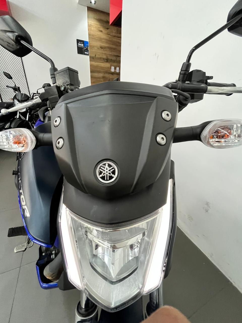 A Yamaha Factor 150 DX 2025 possui motor monocilíndrico de 149 cc, que entrega 11,8 cv (gasolina) a 12 cv (etanol) a 7.250 rpm, com torque de 1,3 kgf.m a 6.000 rpm. A moto tem câmbio de 5 marchas, freio dianteiro a disco com tecnologia UBS e freio traseiro a tambor. O tanque tem capacidade para 15,4 litros, com peso líquido de 133 kg.
