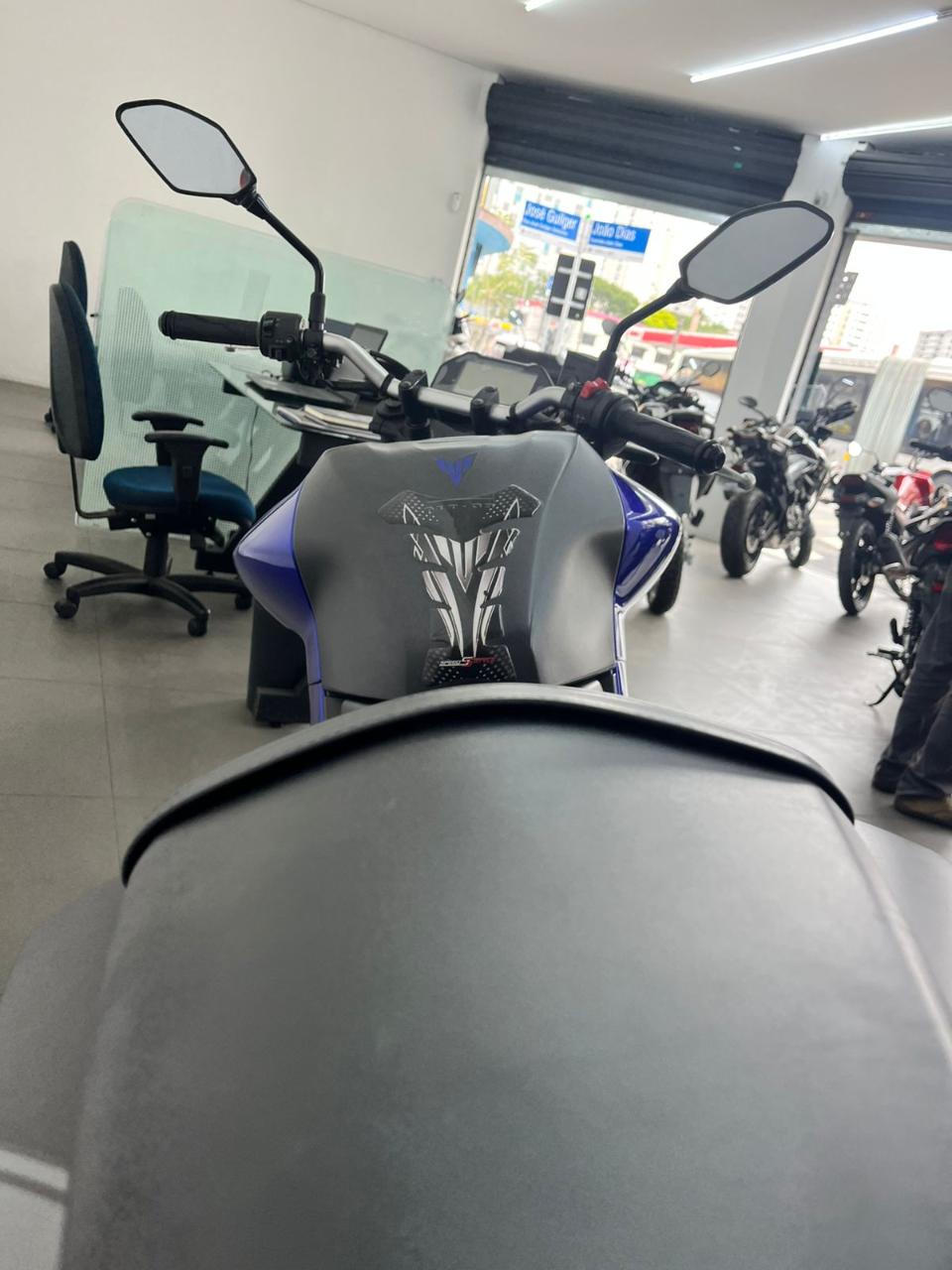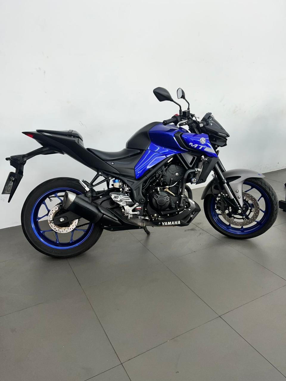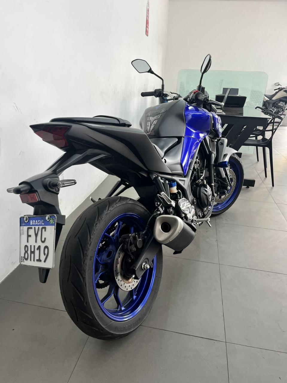 A ficha técnica da Yamaha MT-03 2022 inclui motor bicilíndrico de 321 cc, 41,3 cv de potência, 3,0 kgf.m de torque, câmbio de 6 velocidades e freios ABS nas duas rodas. Possui suspensão dianteira invertida, painel digital, farol em LED, iluminação DRL full LED e tanque de 14,2 litros.